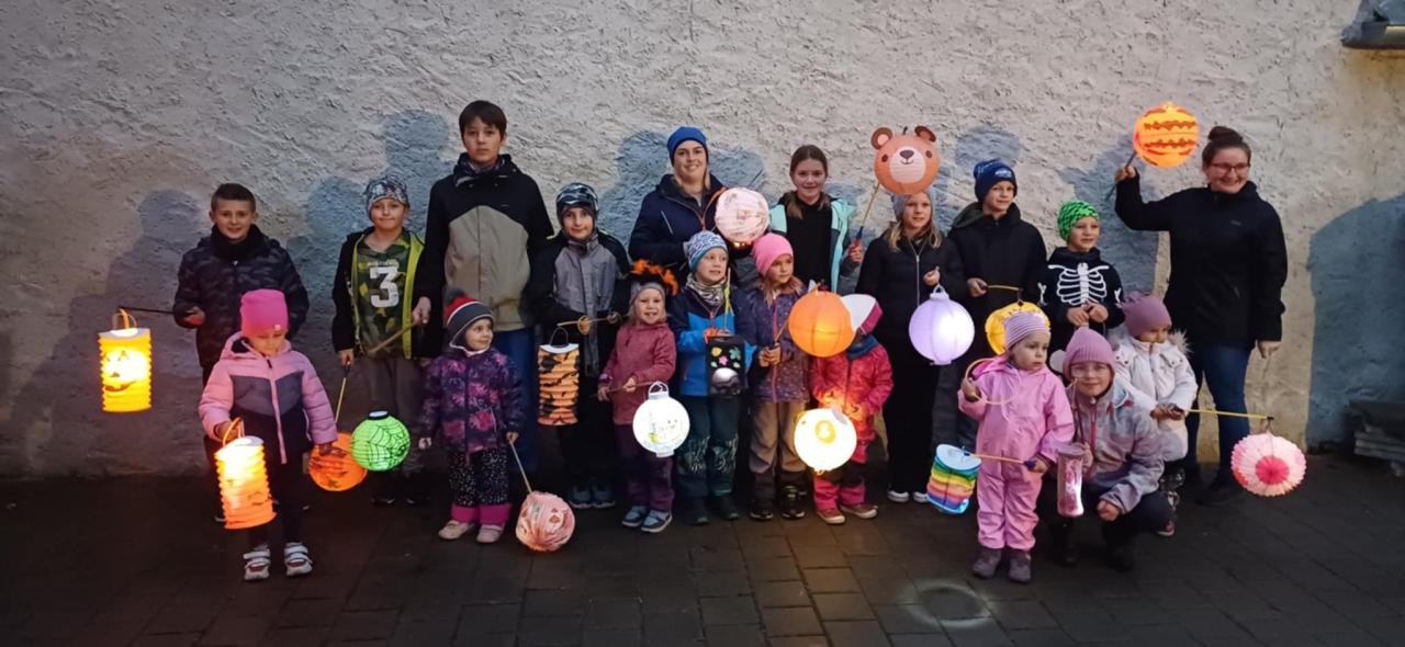 Před průvodem si děti opekly špekáčky a jakmile se začalo šežit vyrazil průvod ulicemi obce, osvětlenou jemným světlem lampionů, což vytvořilo kouzelnou atmosféru podzimního večera.