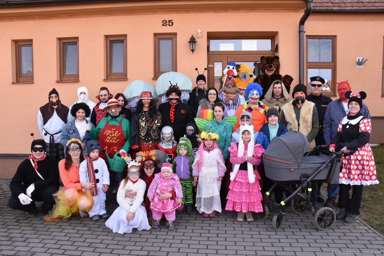 V sobotu 22.2.2020 naši vesnici provoněly koblížky, boží milosti, uzené a jiné pochutiny. Obcí totiž procházel průvod masek, který vyrazil o půl druhé od obecního úřadu a za doprovodu hudby obcházel jednotlivé domy. Proto hospodyňky pro hosty přichystaly velké pohoštění. Letošního průvodu po obci se zúčastnilo 35 masek. Vedle tradiční masky medvěda obcí prošel také čáp, beruška, víly nebo medúzy. I díky pěknému počasí a zájmu spoluobčanů se odpolední obcházení vydařilo a v dobré náladě se pokračovalo i na večerní zábavě, na které hrála skupina Duo Trend. Návštěvníci se díky dobré hudbě, tanci, jídlu, pití a přátelské atmosféře zdrželi až do brzkého rána a některým ještě chvíli trvalo, než mohli odmaskovaní ulehnout do postele.